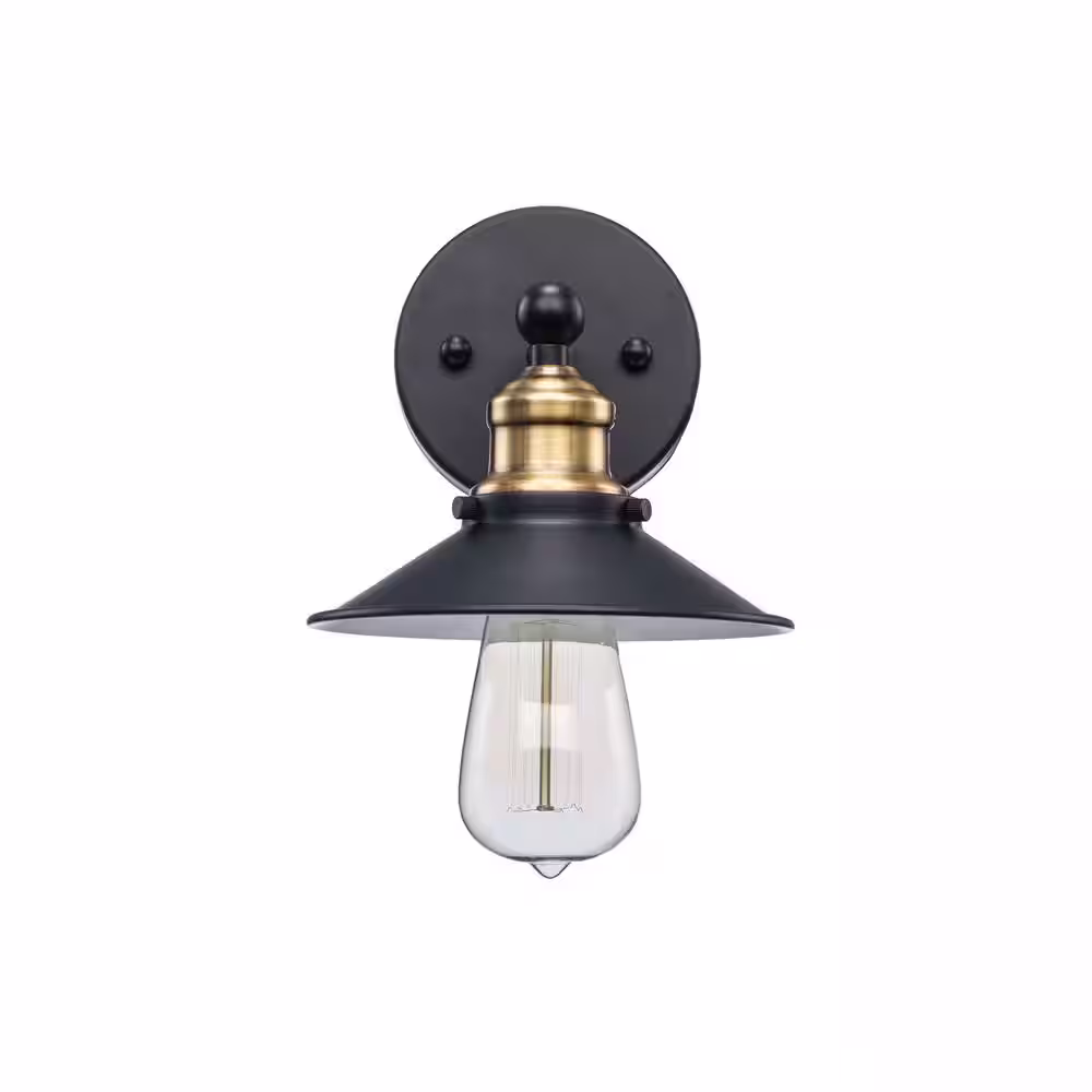 Hampton Bay Glenhurst 1-Light Black and Brass Industrial Farmhouse Indoor Wall Sconce Light Fixture with Metal Shade
