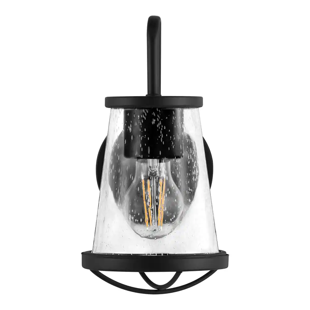 Home Decorators Collection Georgina 5.75 in. 1-light Matte Black Industrial Indoor Wall Sconce with Clear Seeded Glass Shade