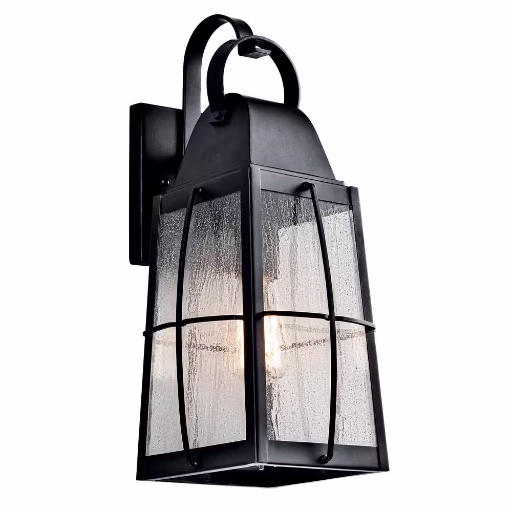 KICHLER Tolerand 17.75 in. 1-Light Textured Black Outdoor Hardwired Wall Lantern Sconce with No Bulbs Included (1-Pack)