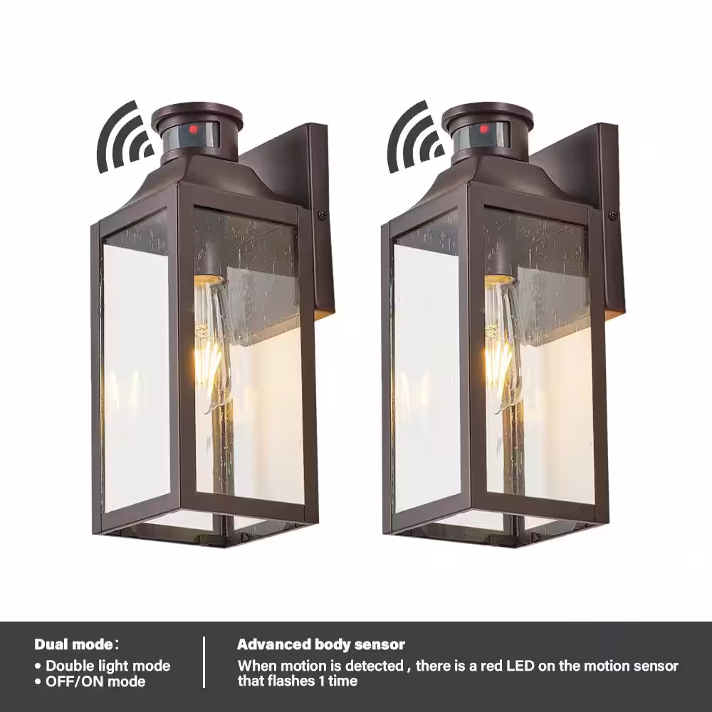 None 2-Light Oil Rubbed Bronze Motion Sensing Metal Hardwired Outdoor Wall Lantern Sconce with No Bulbs Included