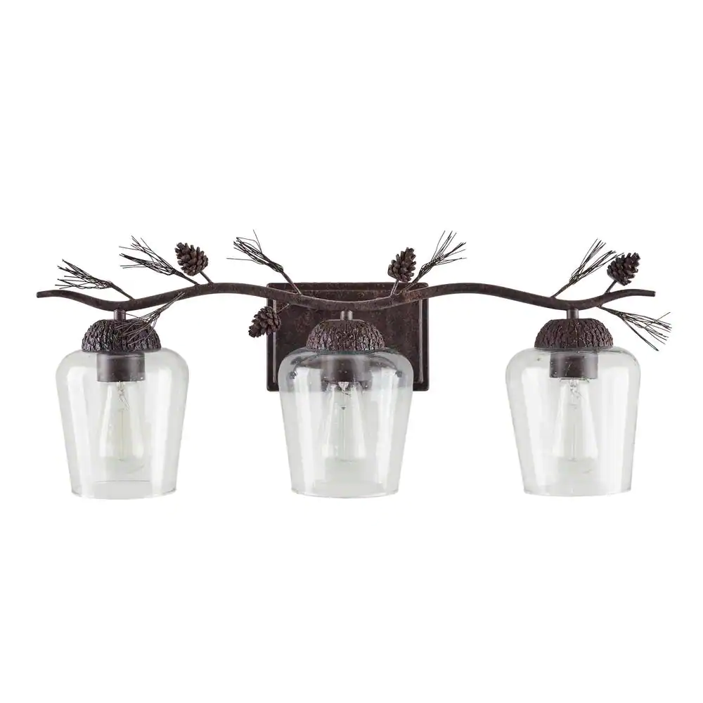 Hampton Bay Spruce Lodge 25 in. 3-Lights Handmade Pinecone Vanity Light with Clear Seeded Glass Shade