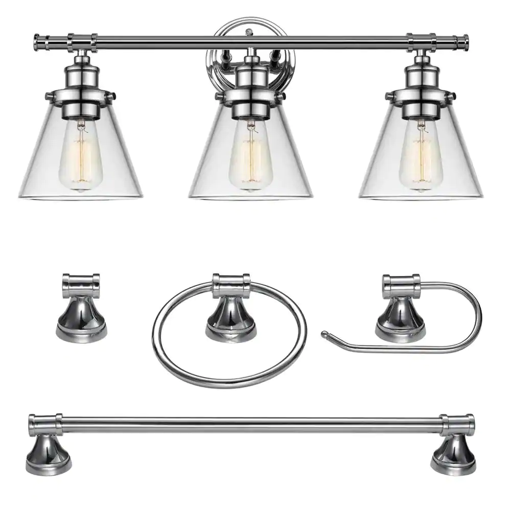 Globe Electric Parker 3-Light Chrome Vanity Light With Clear Glass Shades and Bath Set (5-Piece)
