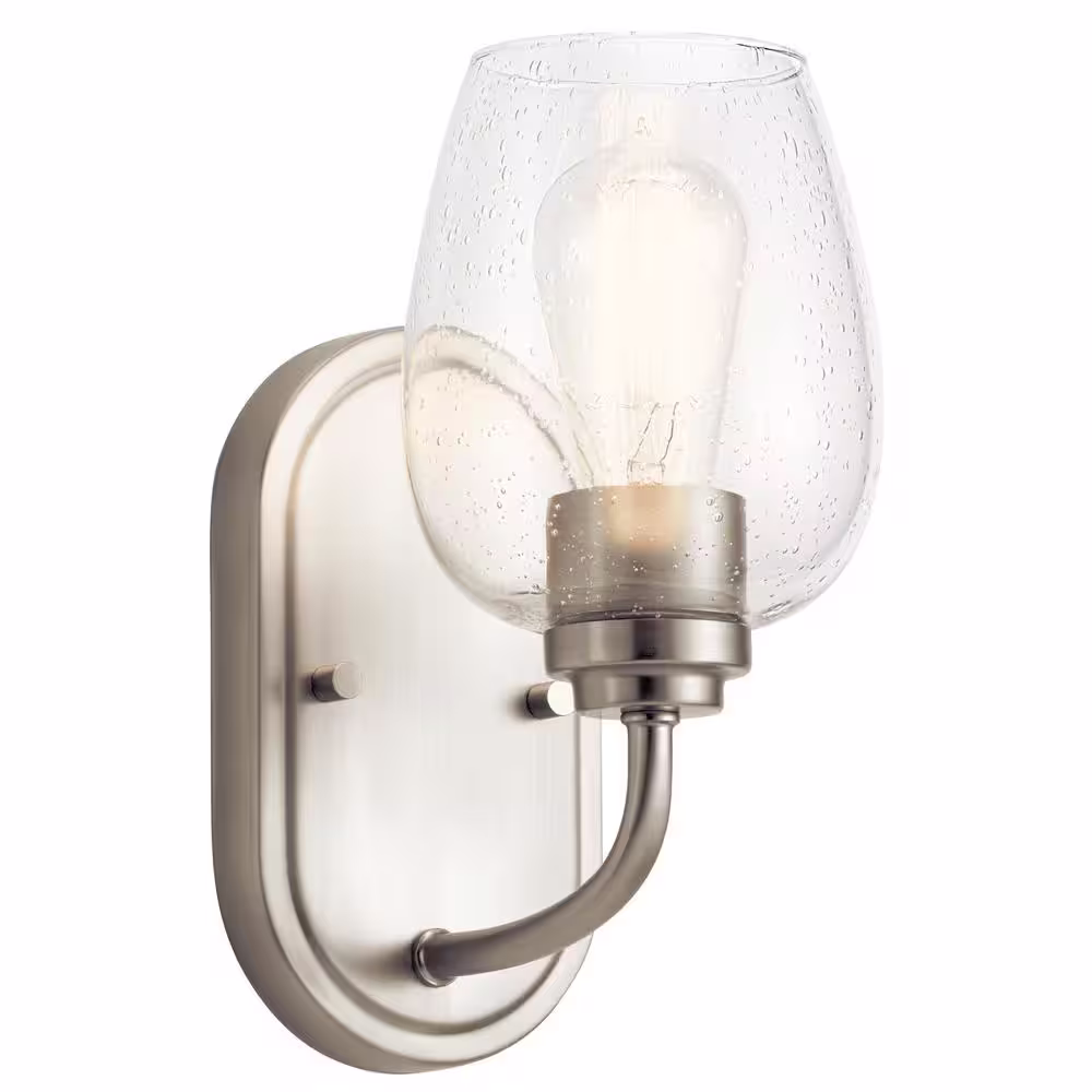 KICHLER Valserrano 1-Light Brushed Nickel Bathroom Indoor Wall Sconce Light with Clear Seeded Glass Shade