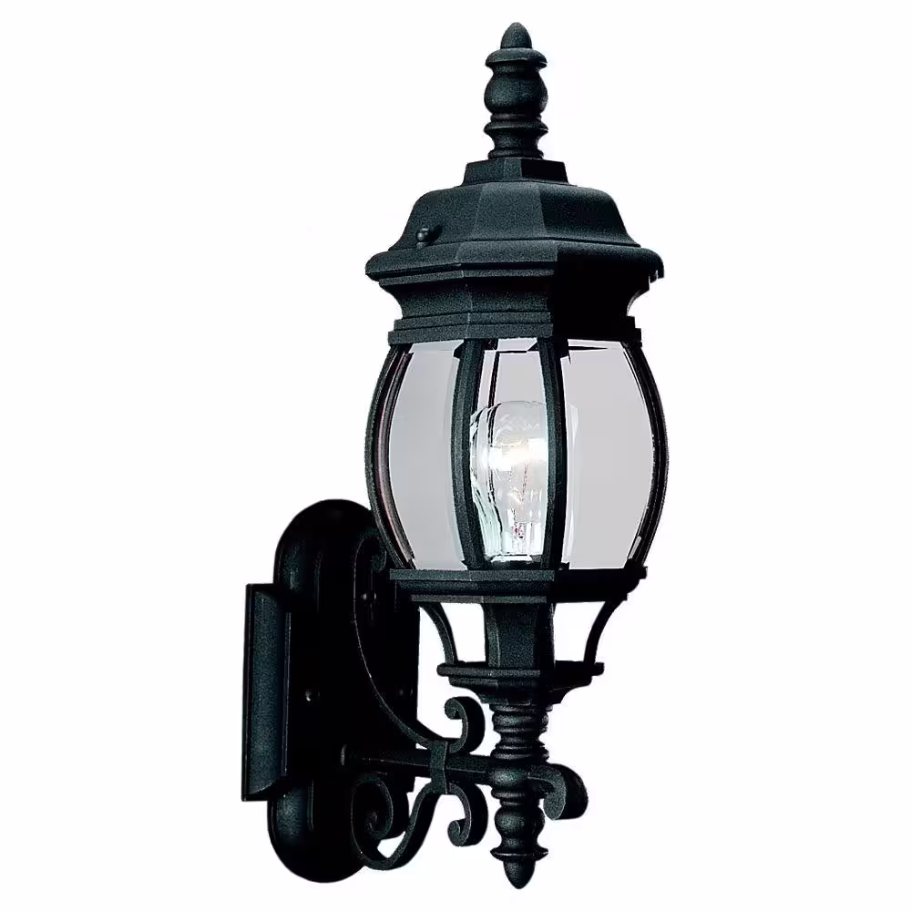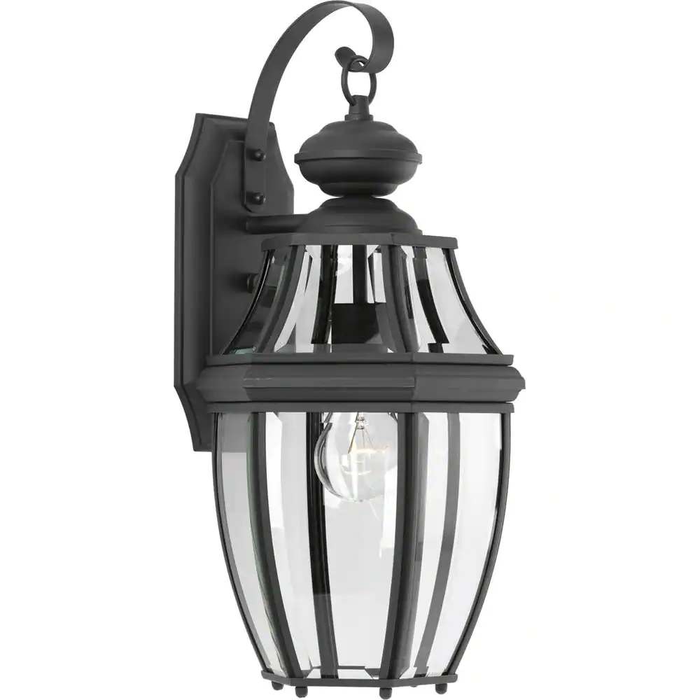 Progress Lighting New Haven Collection 1-Light Textured Black Clear Beveled Glass New Traditional Outdoor Medium Wall Lantern Light