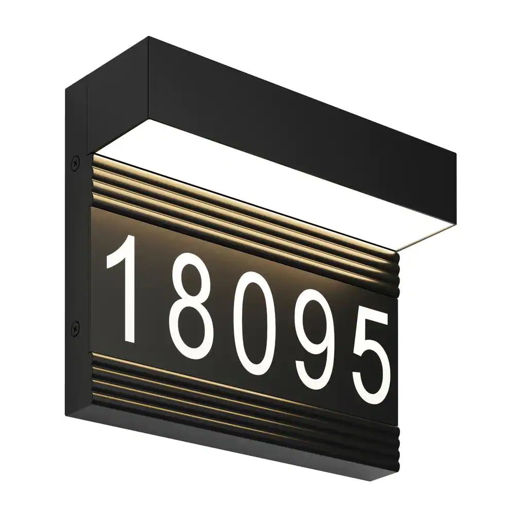Artika Headline Address Name Black Modern Integrated LED Outdoor Hardwired Porch Light Lantern Sconce
