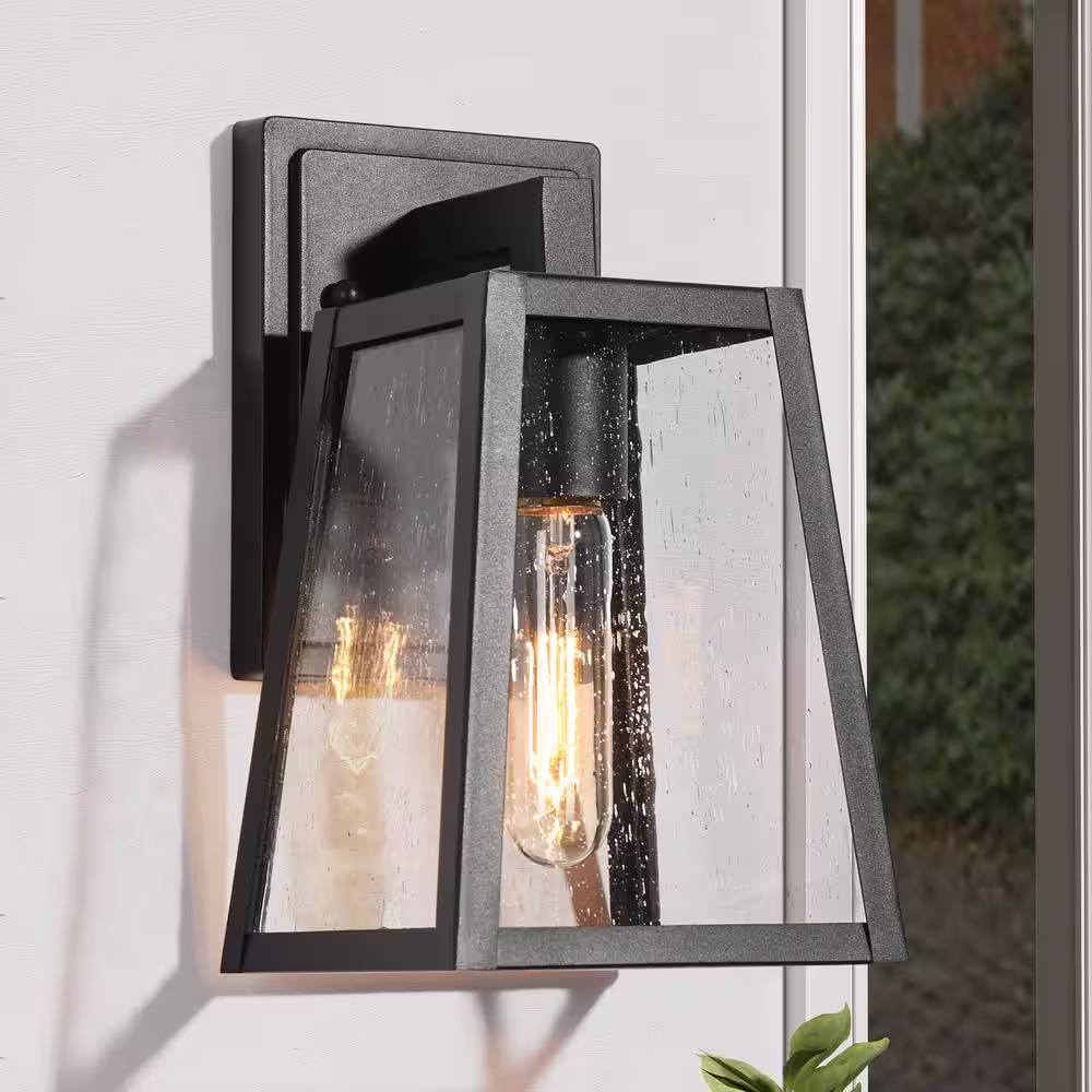 LNC Modern Matte Black 1-Light Lantern Outdoor Sconce Industrial Linear Outdoor Wall Light with Seeded Glass Shade