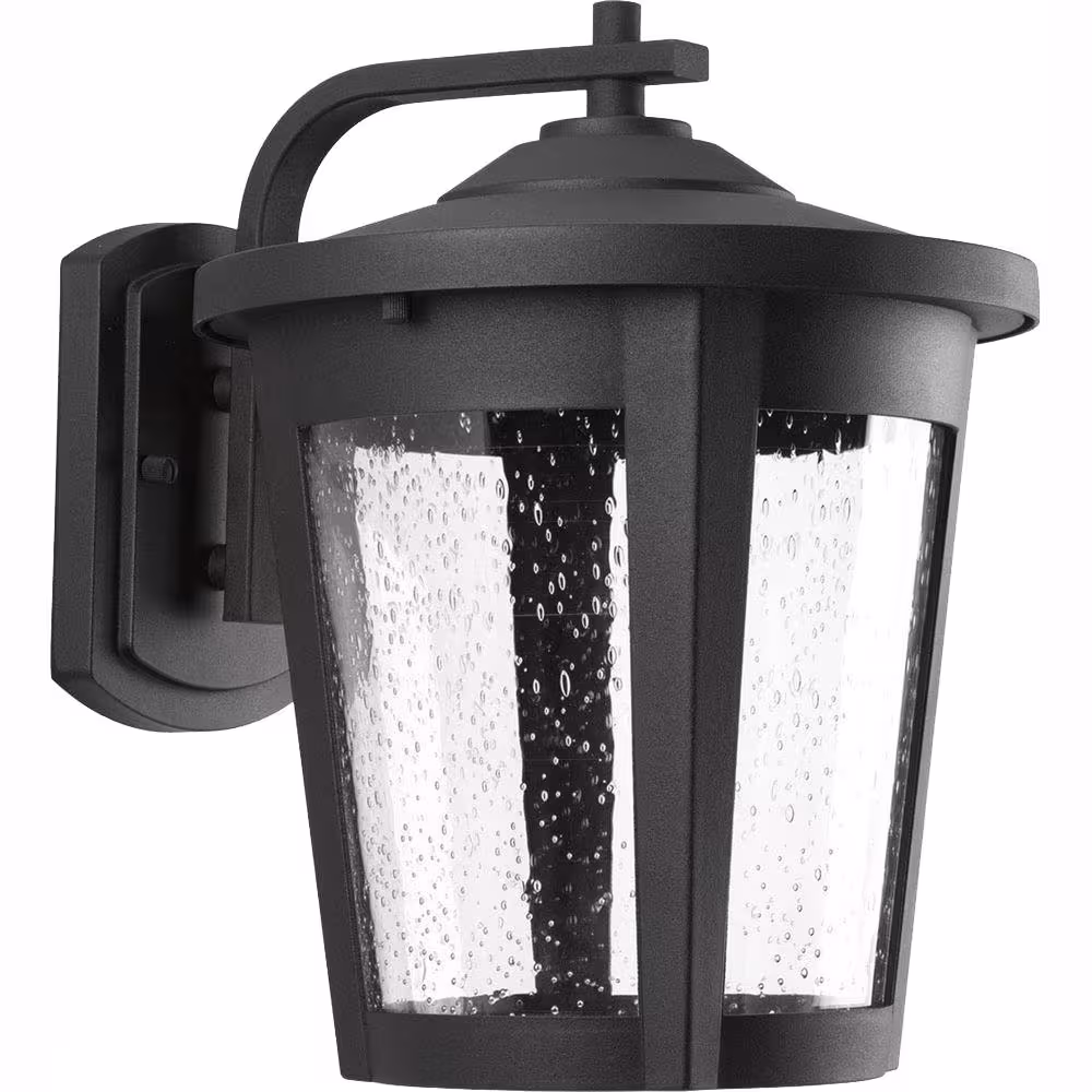 Progress Lighting East Haven LED Collection 1-Light Textured Black Clear Seeded Glass Transitional Outdoor Large Wall Lantern Light