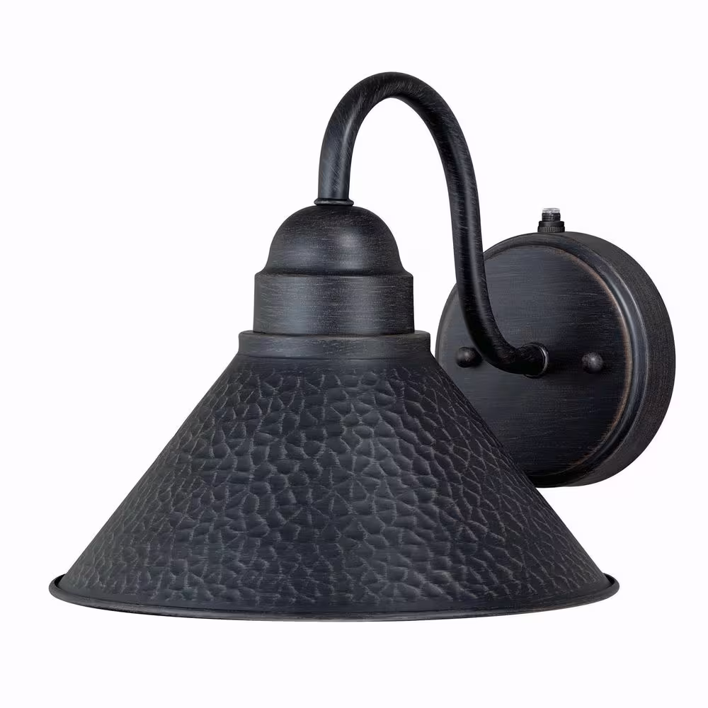 VAXCEL Outland 1-Light Dusk to Dawn Black Gold Farmhouse Barn Dome Outdoor Wall Lantern Sconce