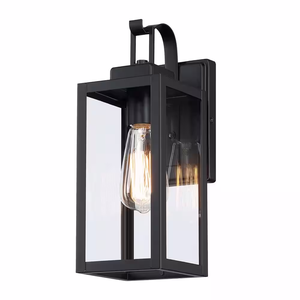 Hukoro 13.78 in. H 1-Light Matte Black Hardwired Outdoor Wall Lantern Sconce