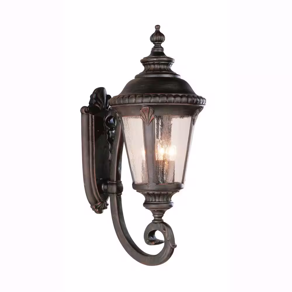 Bel Air Lighting Commons 4-Light Rust Coach Outdoor Wall Light Fixture with Seeded Glass