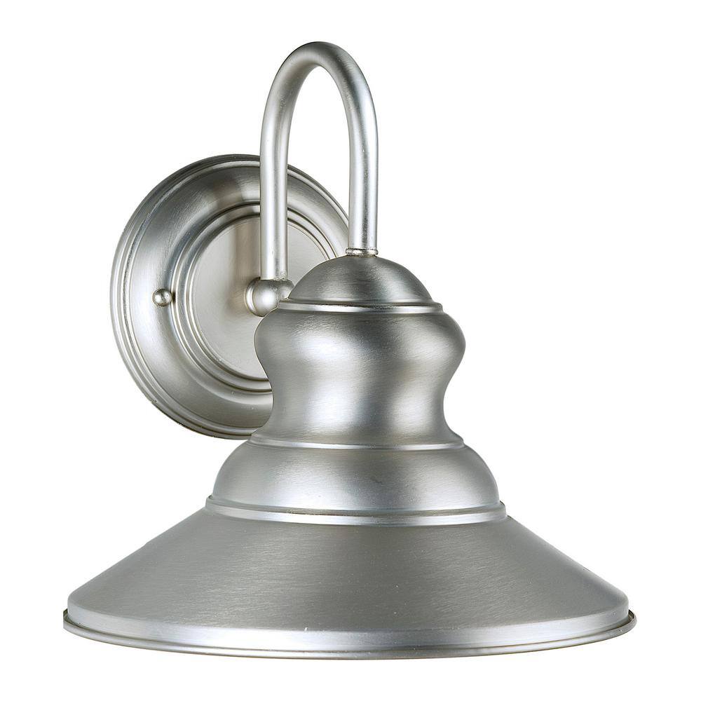 None 1-Light Brushed Nickel Outdoor Wall Mount Lantern with Metal Shade