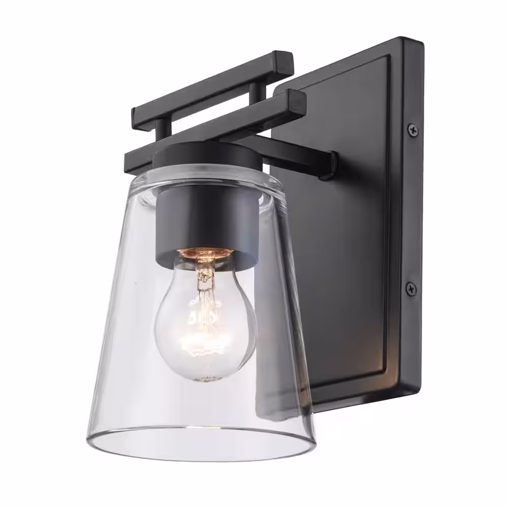 Bel Air Lighting Iris 1-Light Black Indoor Wall Sconce Light Fixture with Clear Glass Shade