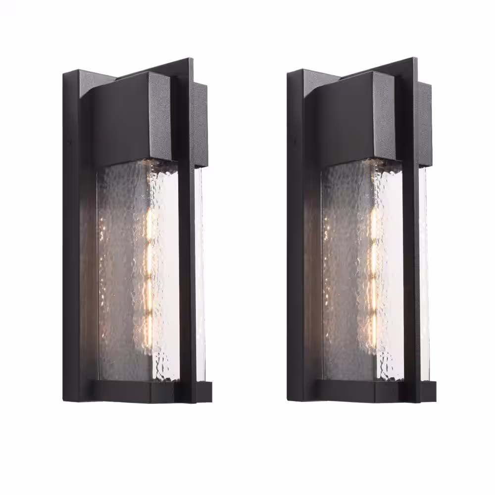 Maxax Montpelier Black/Sand Black 13'' H Hardwired Water Glass Outdoor Wall Lantern Sconce with Dusk to Dawn (Set of 2)