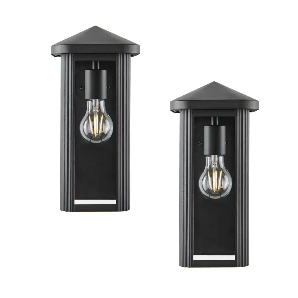 Hampton Bay Granby 1-Light Black Outdoor Wall Light Fixture with Clear Glass (2-Pack)