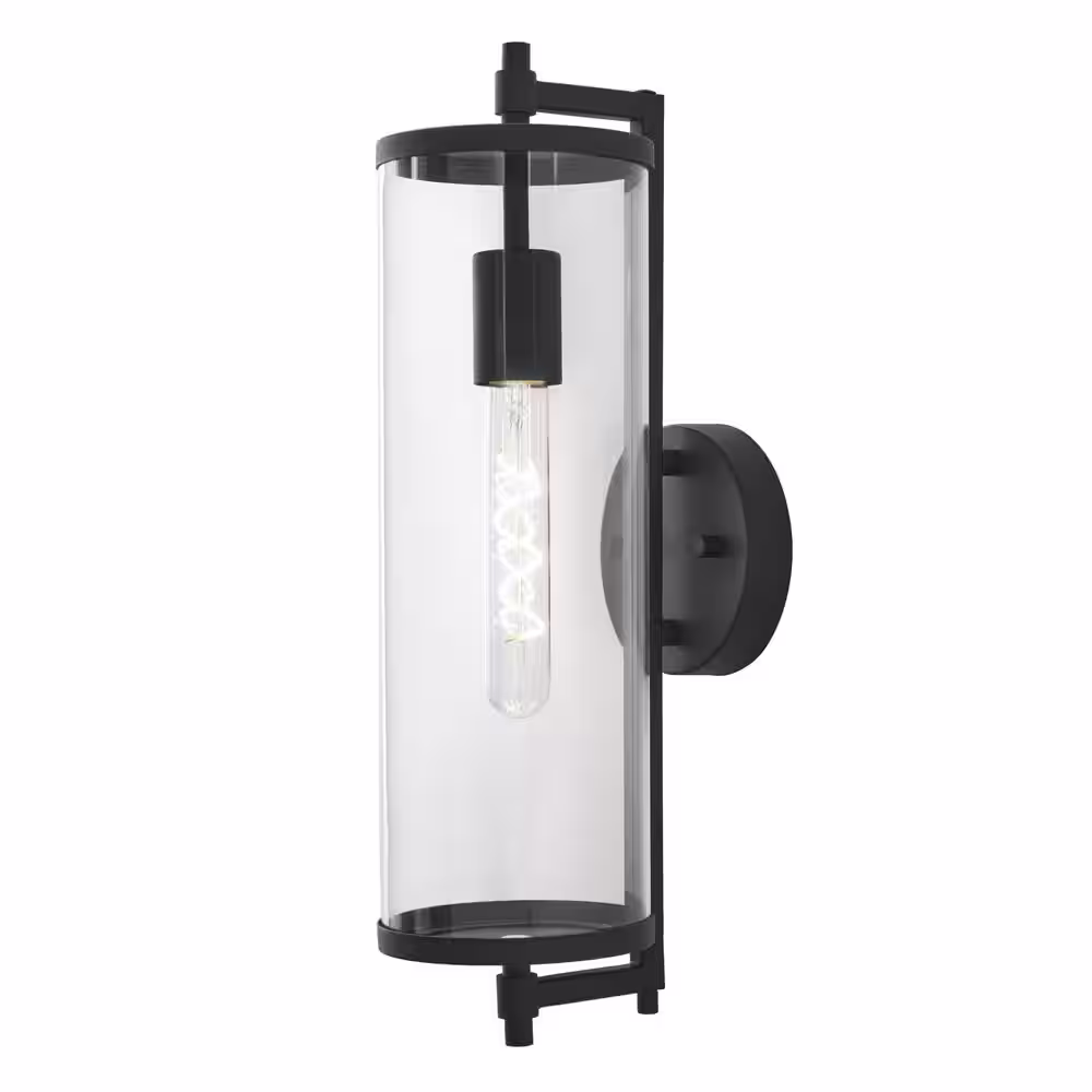 None Lurelane 18 in. Large Modern 1-Light Matte Black Hardwired Outdoor Cylinder Wall Lantern Sconce