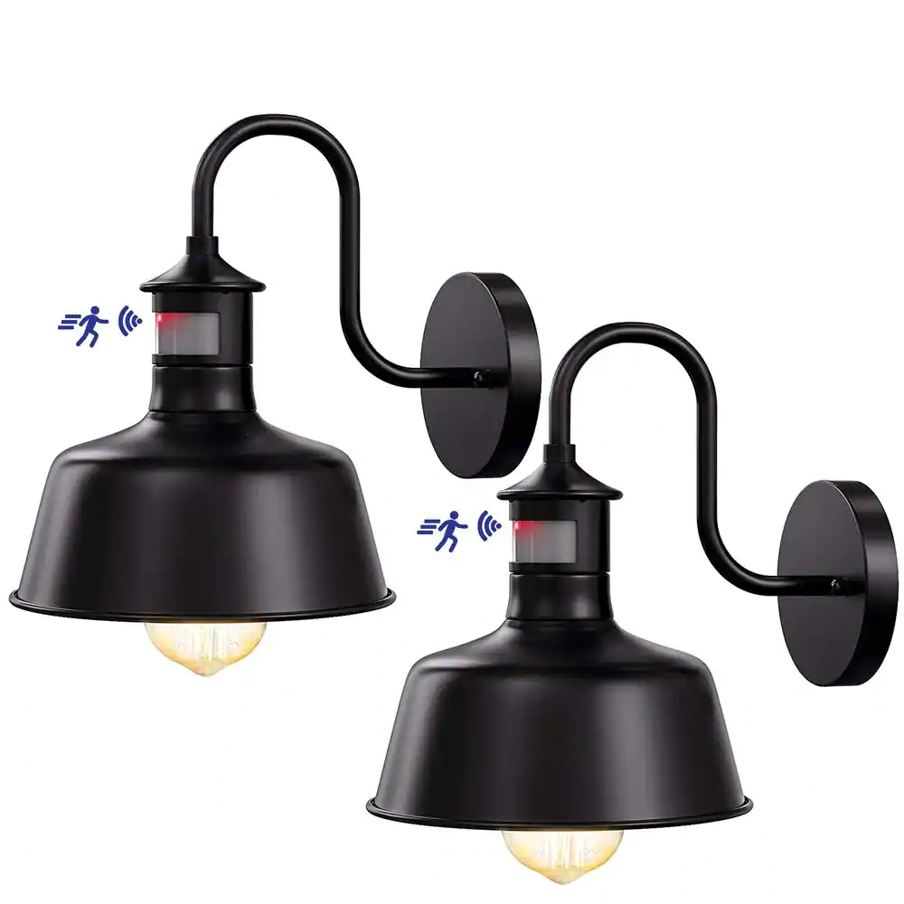 None Black Motion Sensing Dusk to Dawn Hardwired Gooseneck Outdoor Barn Light with No Bulbs Included