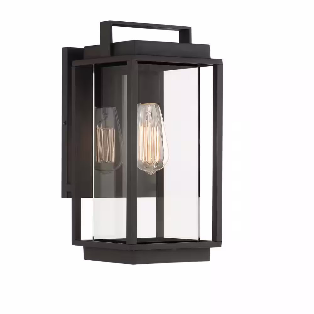 Home Decorators Collection Melrose 1-Light Sand Black LED Outdoor Wall Mount Lantern