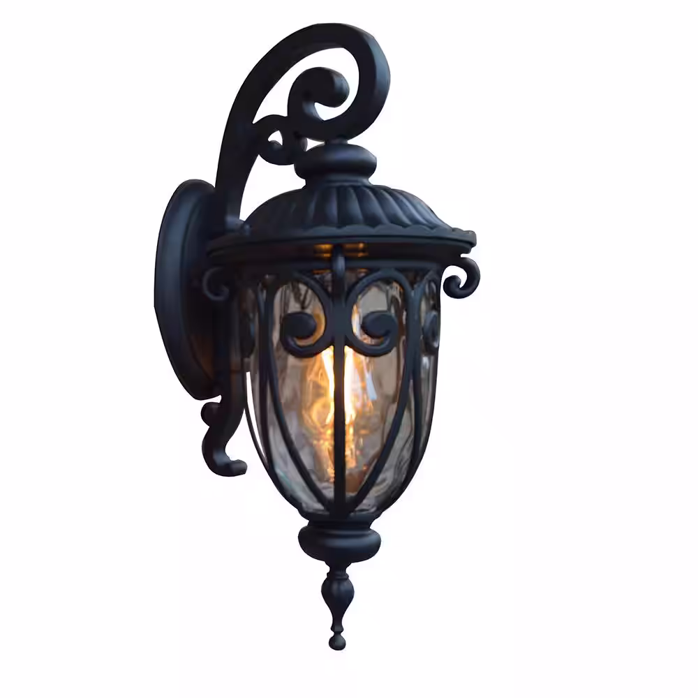 C Cattleya 1-Light 7 in. Black Outdoor Wall Lantern Sconce with Clear Glass