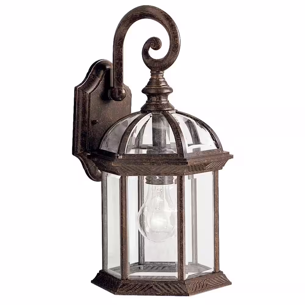 KICHLER Barrie 15.5 in. 1-Light Tannery Bronze Outdoor Hardwired Wall Lantern Sconce with No Bulbs Included (1-Pack)