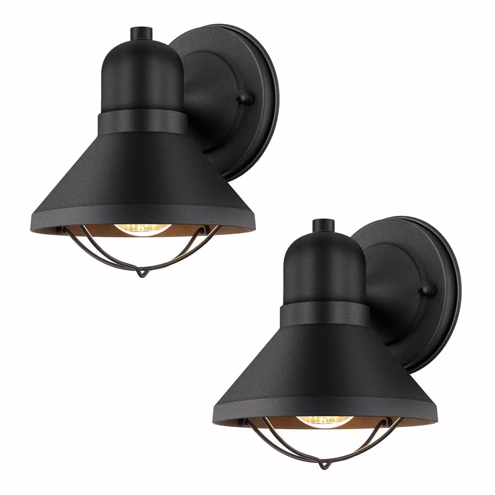 TRUE FINE Richland 1-Light Powder-Coated Black Outdoor Wall Lantern Sconce (Set of 2)