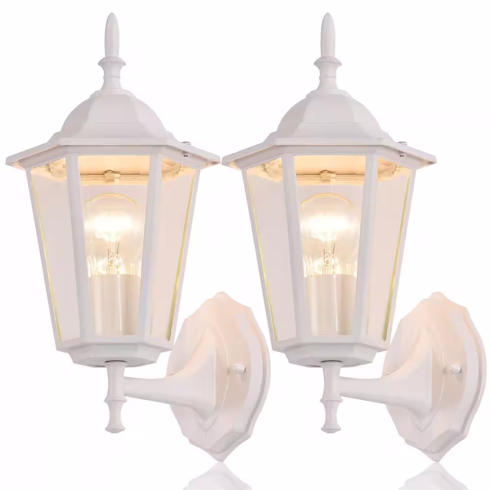 C Cattleya 1-Light White Die-Cast Aluminum Outdoor Wall Lantern Sconce (2-Pack)