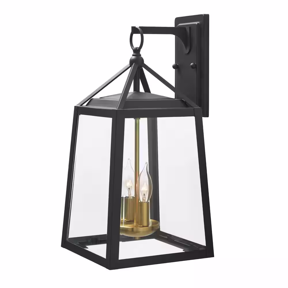 Home Decorators Collection Blakeley Transitional 2-Light Black and Brass Outdoor Wall Light Fixture with Clear Beveled Glass