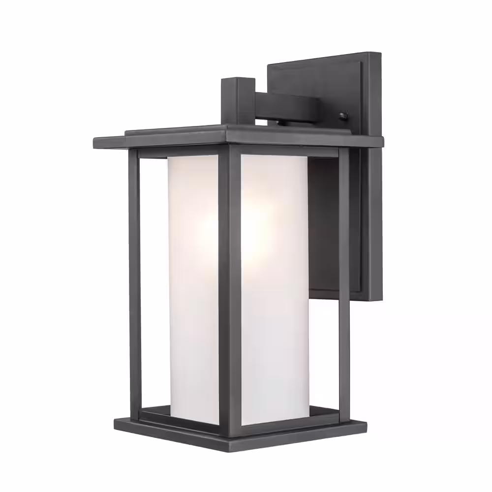 Westinghouse Eddystone 1-Light Matte Black Outdoor Wall Mount Sconce with White Opal Glass, Dusk to Dawn Sensor