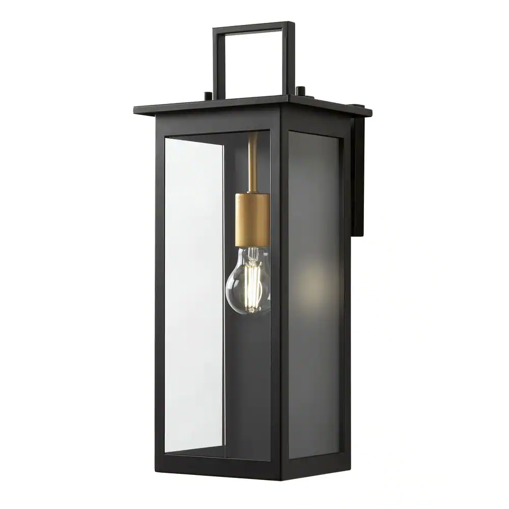None Autumnhill 19.13 in. Matte Black with Gold Accents 1-Light Outdoor Line Voltage Wall Sconce with No Bulb Included