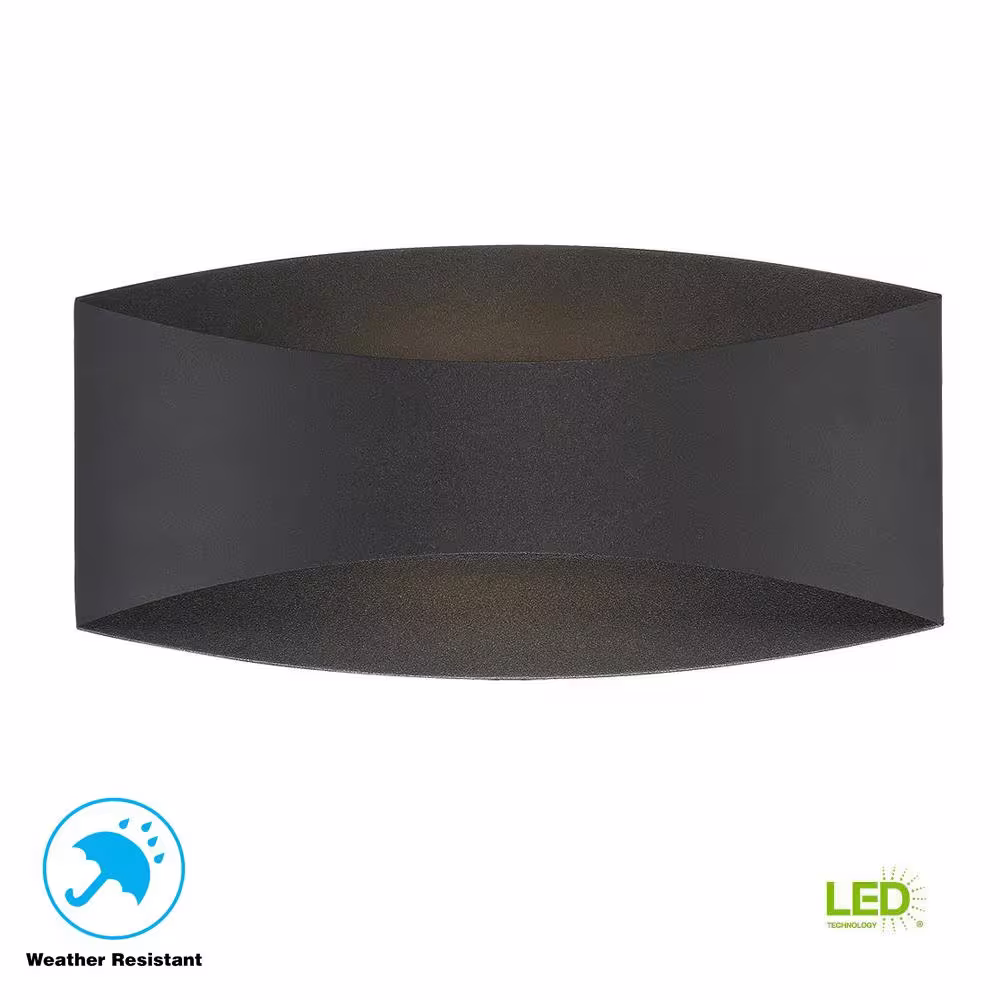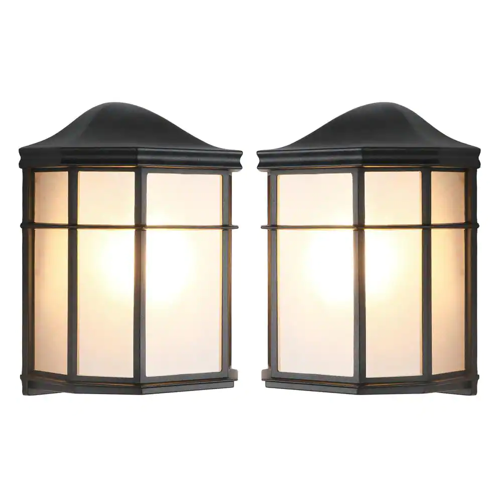 Home Decorators Collection Greeleyville 2-Light Sand Black Outdoor Integrated LED Wall Lantern Sconce with Etched Glass