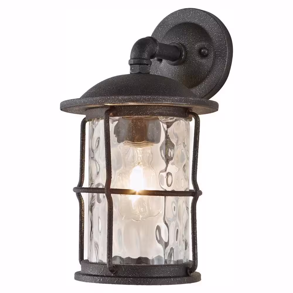 Home Decorators Collection Hargreaves 7 1/2 in. One Light Gilded Iron Rustic Farmhouse Outdoor Wall Lantern Sconce with Seeded Glass
