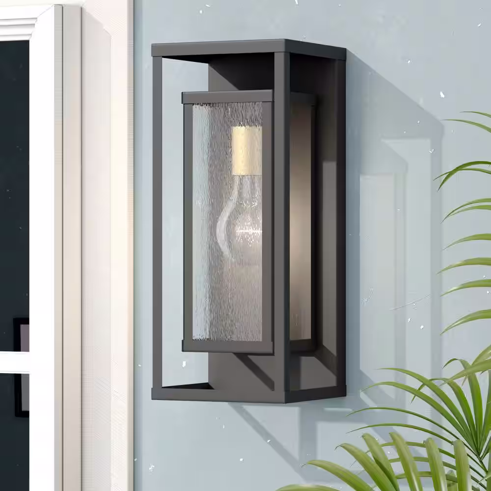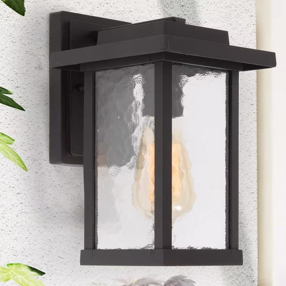 LNC Matte Black Outdoor Wall Lantern Sconce with Textured Glass Shade Modern 1-Light Porch Patio Garden Wall Mounted Light