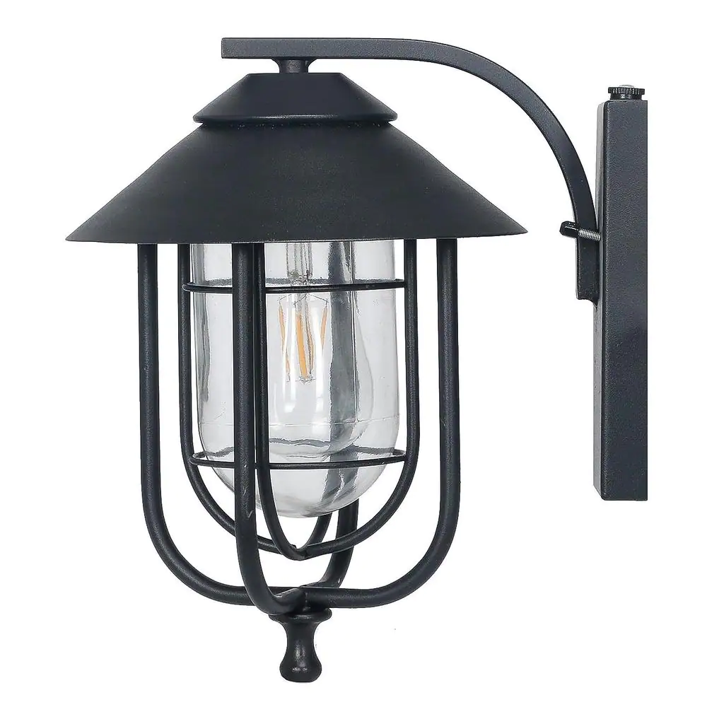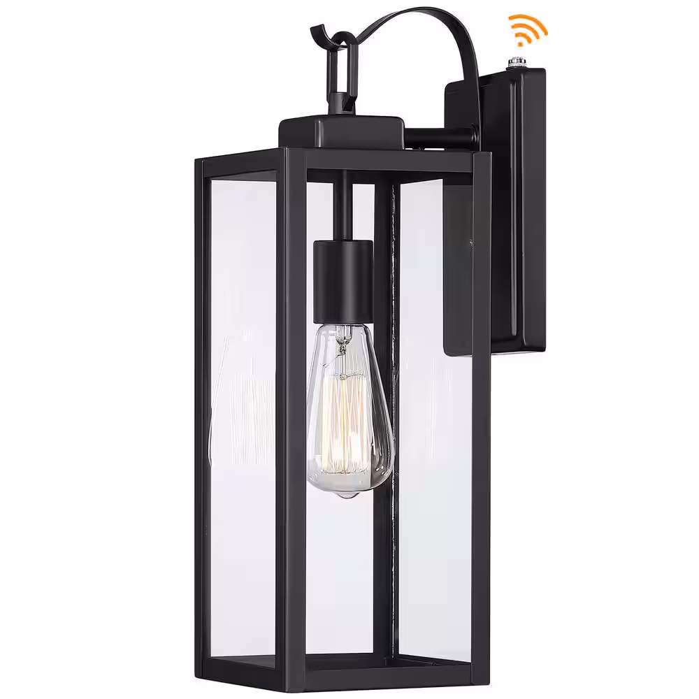 Pia Ricco 1-Light Matte Black Dusk to Dawn Sensor Hardwired Outdoor Lantern Wall Sconce, Exterior Wall Fixture