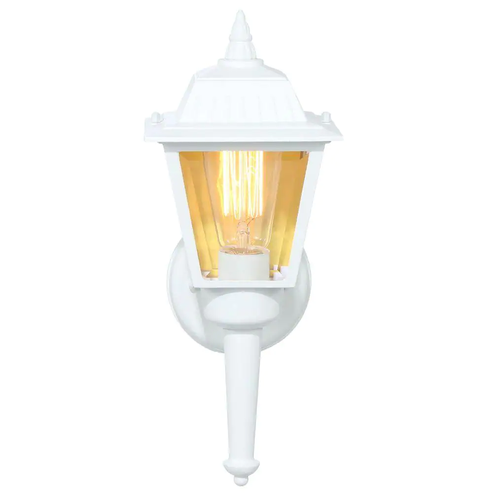 Hampton Bay 13.75 in. White 1-Light Outdoor Wall Lamp with Clear Beveled Glass Shade
