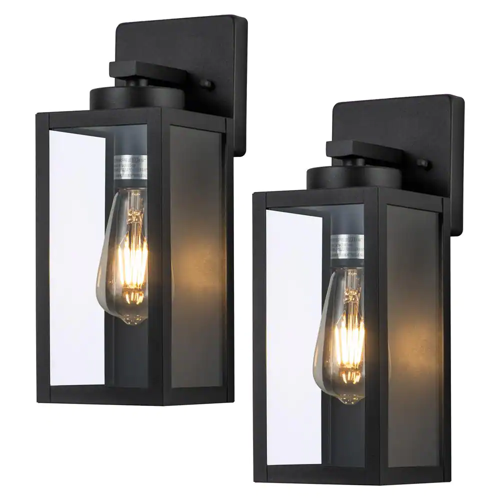 None 1-Light Matte Black Hardwired Outdoor Wall Lantern Sconce with Clear Tempered Glass (2-Pack)
