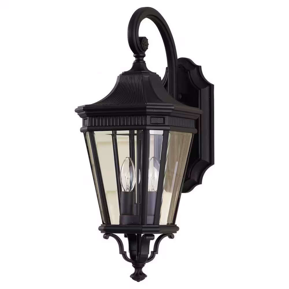 Generation Lighting Cotswold Lane 2-Light Black Outdoor 20.5 in. Wall Lantern Sconce