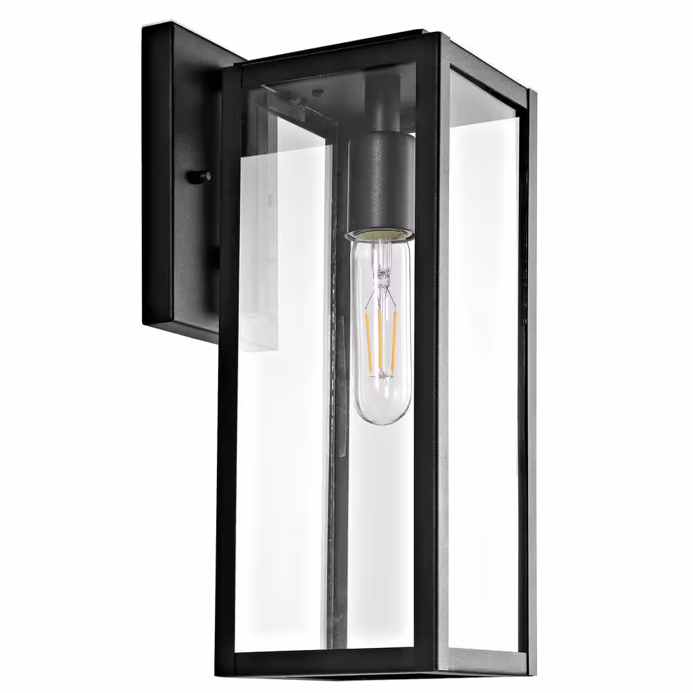 LNC Frosted Black Outdoor Sconce for Front Door Porch Entry Modern Wall Light with Clear Glass Plaid Shade 1-Light Wall Lamp