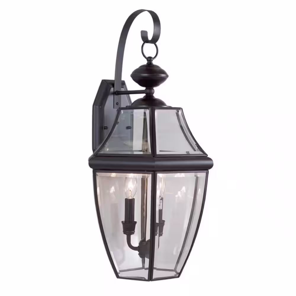 Volume Lighting 3-Light Antique Bronze Hardwired Outdoor Coach Light Sconce with Clear Beveled Glass