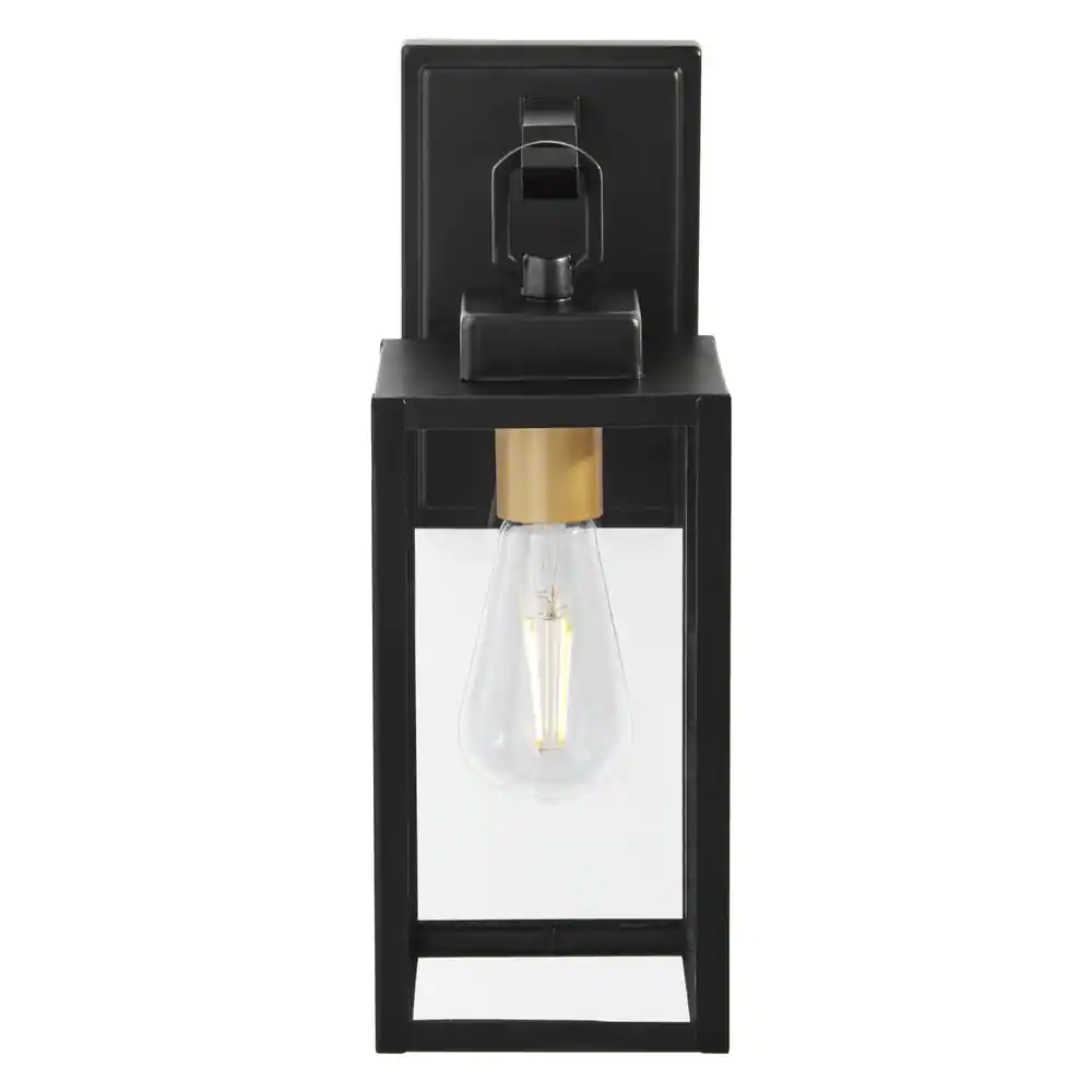 None Maplebrook 13.6 in. Matte Black with Gold Accents 1-Light Outdoor Line Voltage Wall Sconce with No Bulb Included