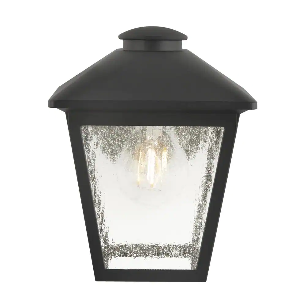 Hampton Bay Ashton 1-Light Black Outdoor Wall Lantern Sconce Light with Seeded Glass