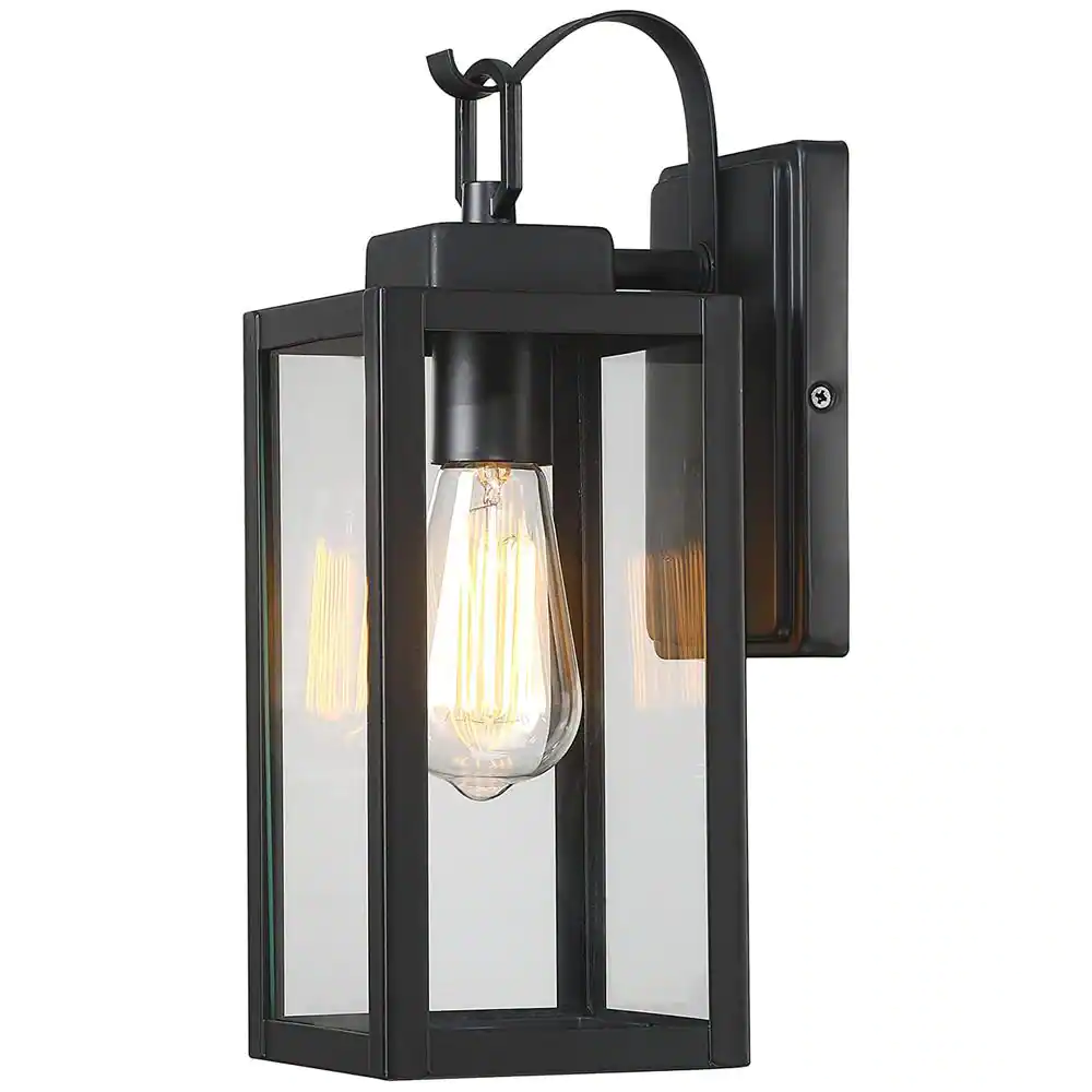 None Malena 1-Light Black Hardwired Outdoor Wall Lantern Sconce Light with Clear Seeded Glass