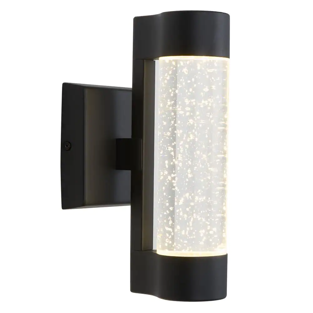 Home Decorators Collection Ansel Black Modern Bubble Glass Integrated LED Outdoor Hardwired Garage and Porch Light Cylinder Sconce