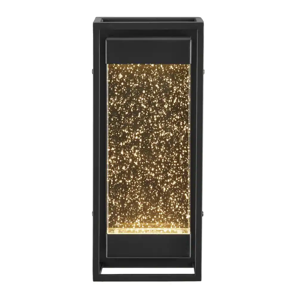 Hampton Bay Lindley Modern 1-Light Matte Black Hardwired LED Outdoor Wall Lantern Sconce with Bubble Double Frame (1-Pack)