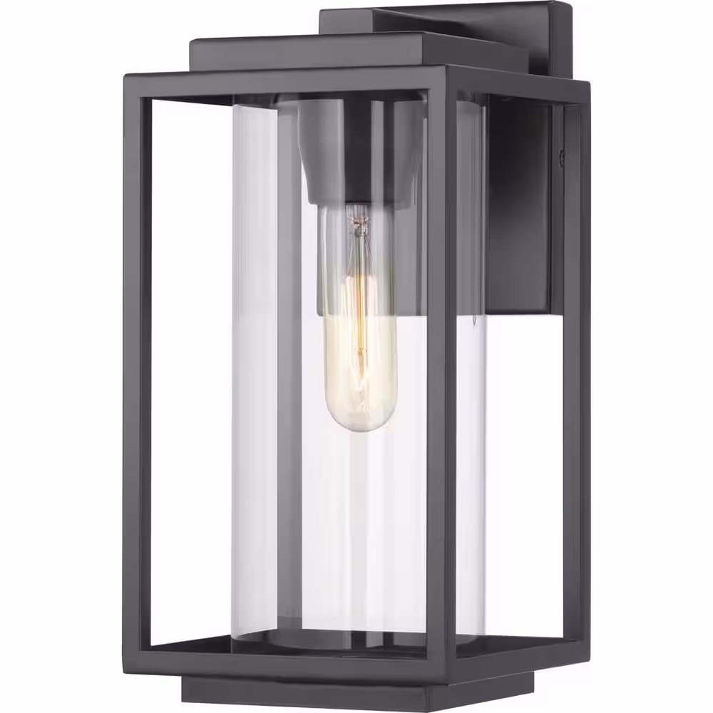 Progress Lighting Macstreet 12 in. 1-Light Matte Black Modern Outdoor Wall Lantern with Clear Glass