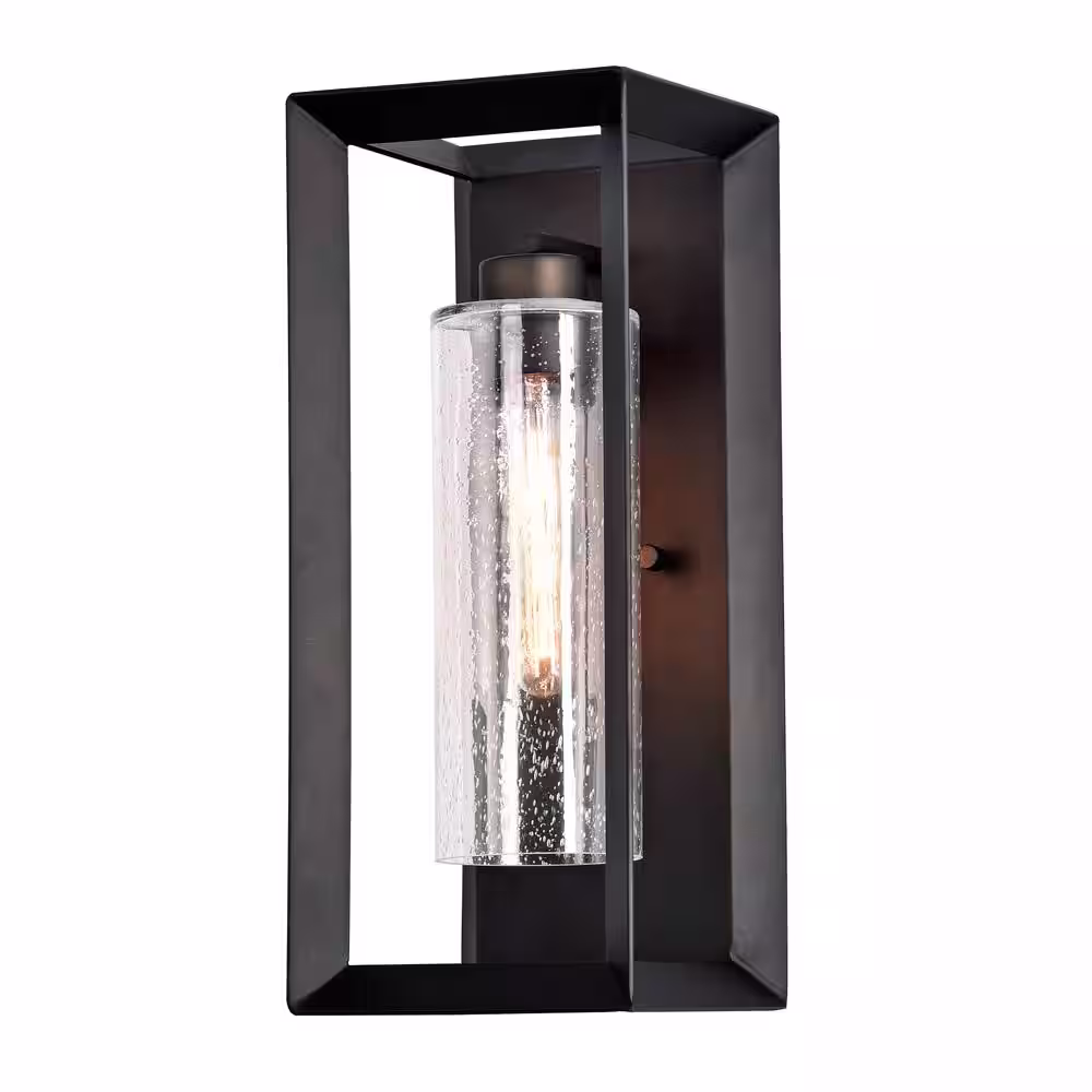 Home Decorators Collection 1-Light Black Integrated LED Outdoor Wall Lantern Sconce Light with Seeded Glass