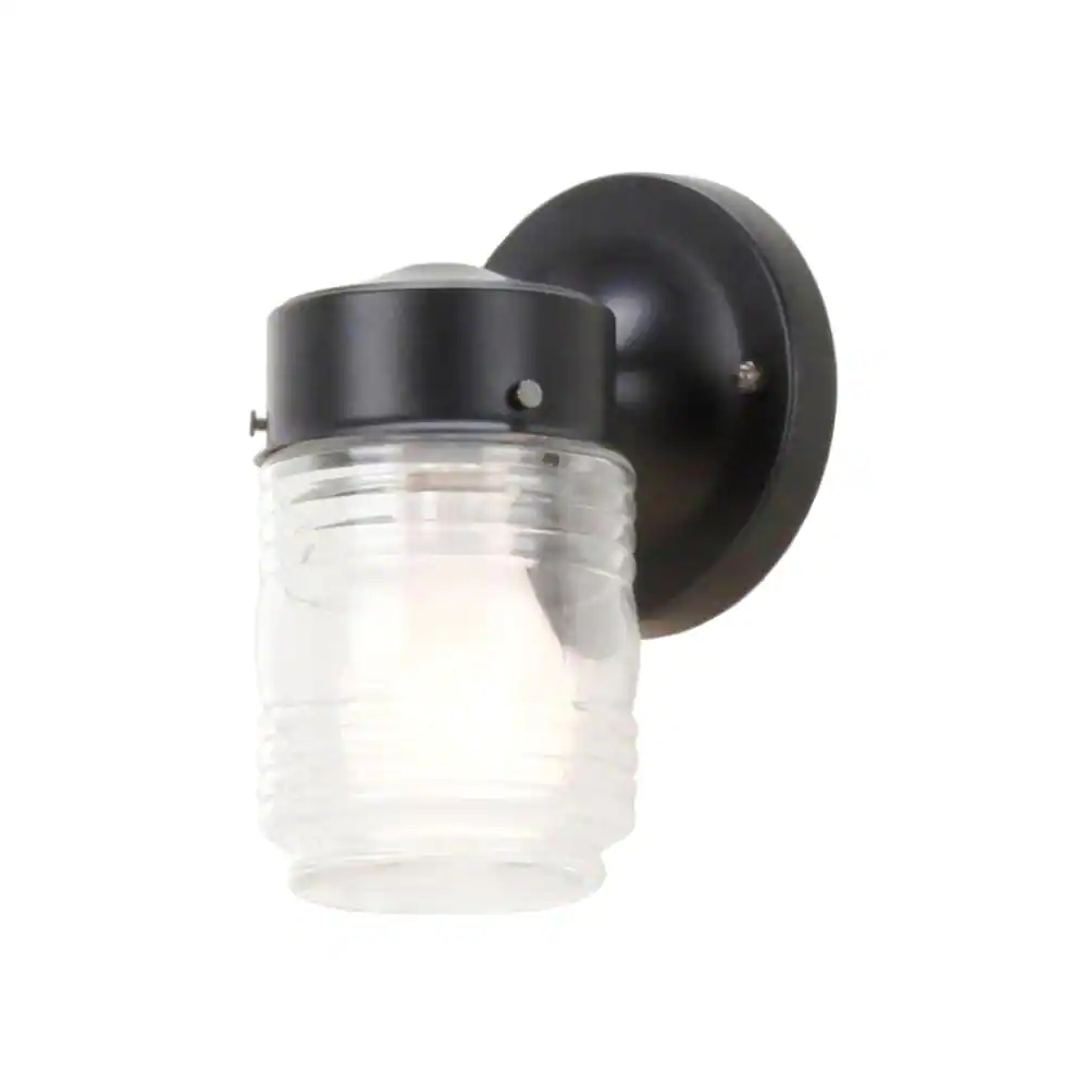 Hampton Bay 1-Light Matte Black Jelly Jar Outdoor Wall Lantern Sconce