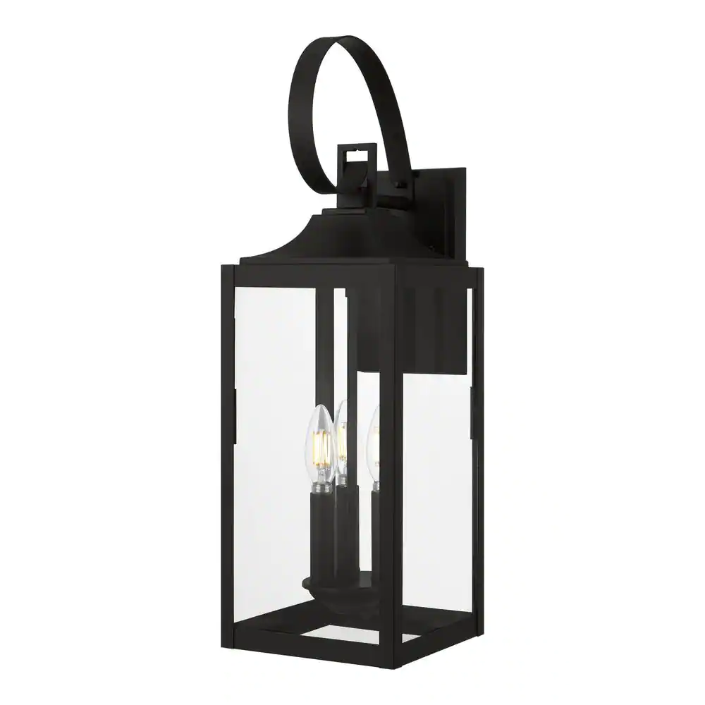 Home Decorators Collection Havenridge 3-Light Matte Black Hardwired Outdoor Wall Lantern Sconce with Clear Glass (1-Pack)