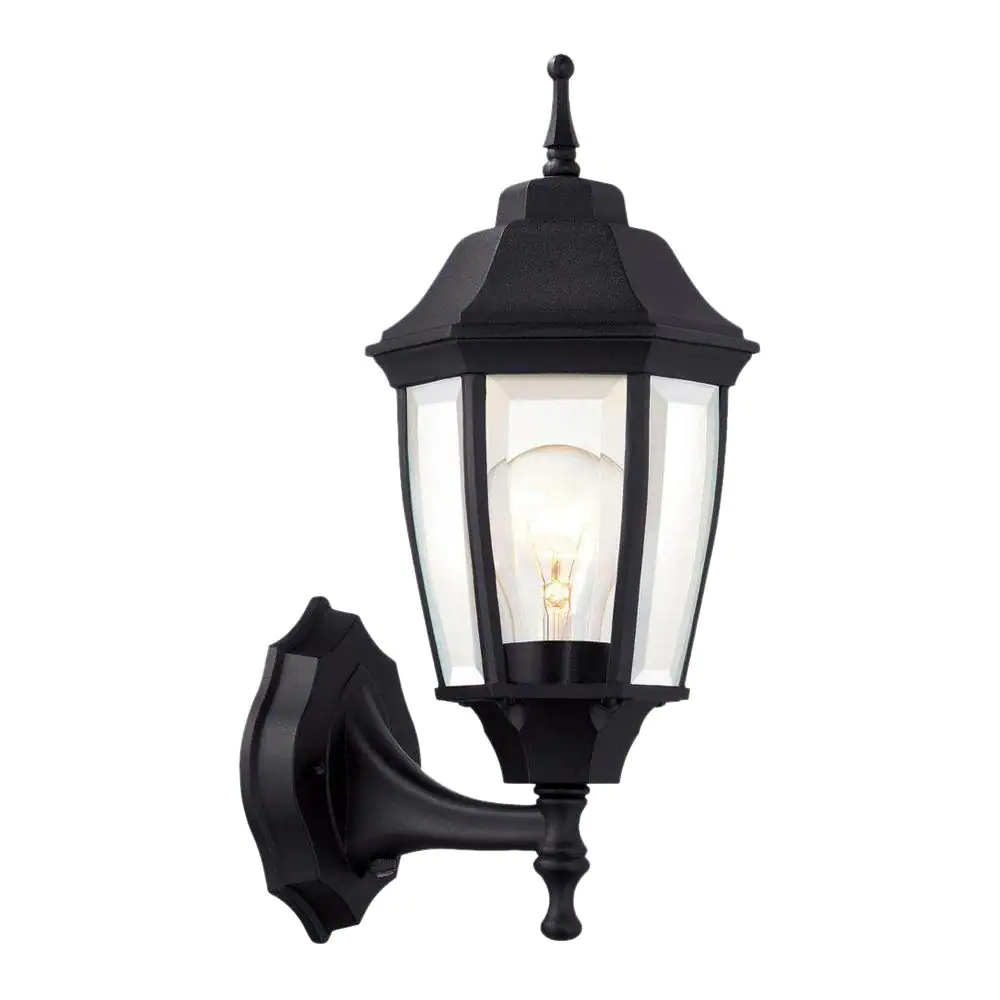 Hampton Bay 14.5 in. Black Dusk to Dawn Decorative Outdoor Wall Lantern Sconce Light