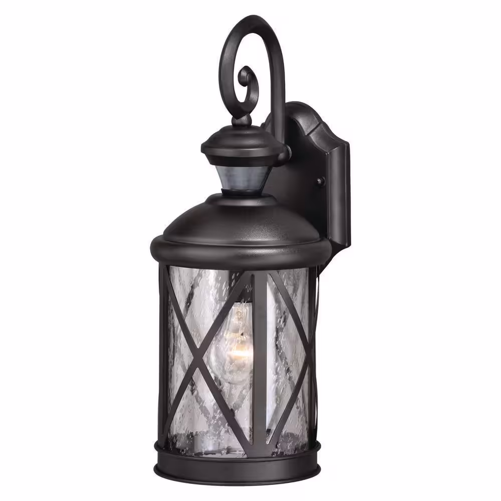 Home Decorators Collection Mauvo Canyon Black Dusk to Dawn Small LED Outdoor Wall Light Fixture with Seeded Glass