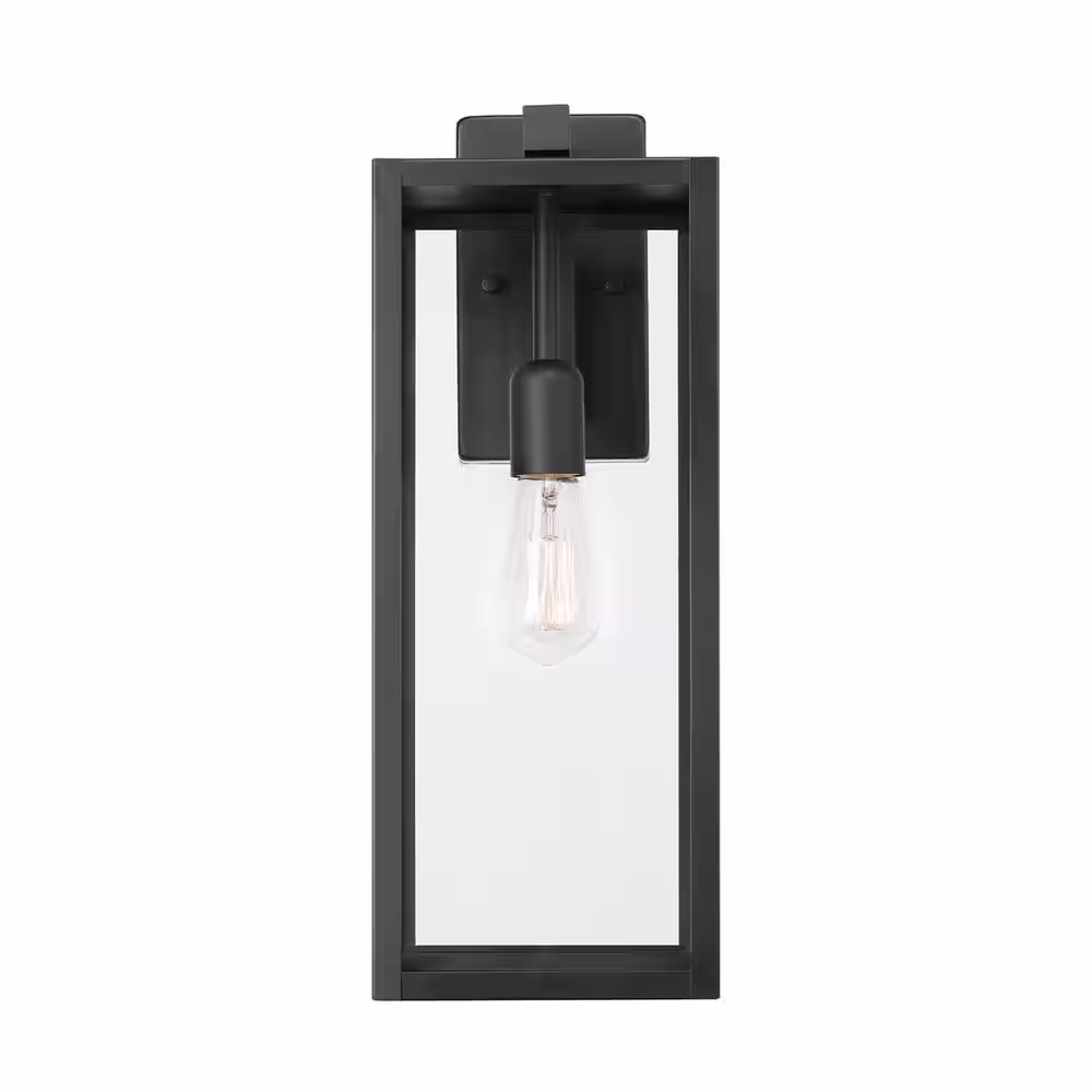 Hampton Bay Matte Black Farmhouse Outdoor 1-Light Wall Sconce with Clear Glass Shade