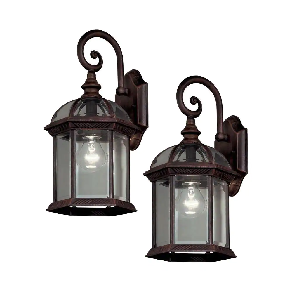 Hampton Bay Wickford 1-Light Weathered Bronze Outdoor Wall Light Fixture with Clear Glass (2-Pack)